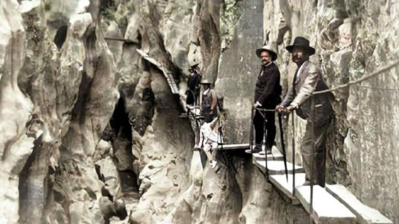 Aquí entra en escena Rafael Benjumea, conocido como el “Ingeniero Poeta” por la belleza y funcionalidad de sus obras hidráulicas. Benjumea propuso crear una senda adosada a las paredes del Desfiladero de los Gaitanes, permitiendo el paso entre los saltos, mejorando la vigilancia del canal y facilitando el acceso tanto a operarios como a material técnico. Así nació el primer sendero del Gaitanejo, una obra que unió innovación, adaptación al terreno y cierta dosis de riesgo.